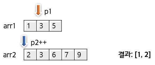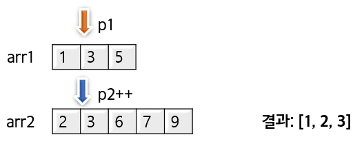 - p2: 두 번째 배열(arr2)의 현재 위치