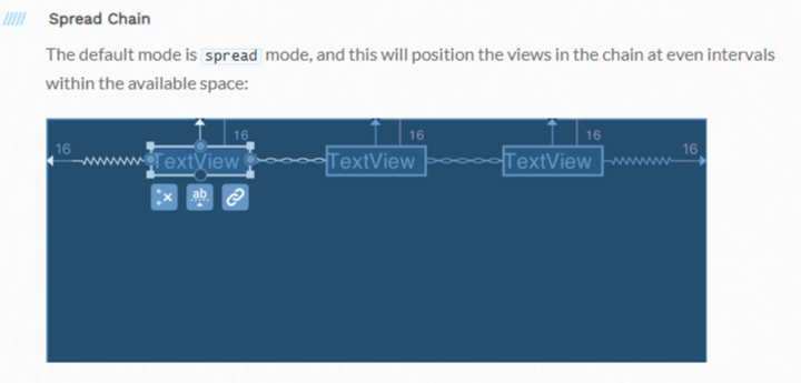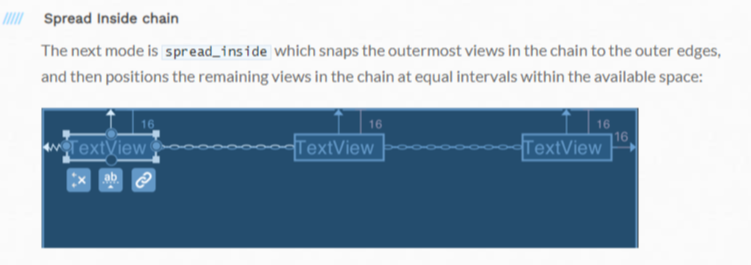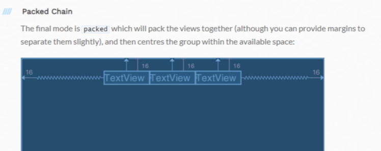 ConstraintLayout Chain에는 spread, spread_inside, and packed 세가지 모델이 있다.
