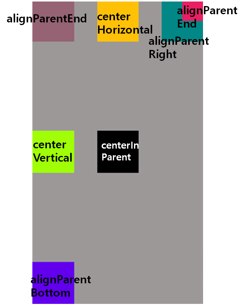 | `layout_centerInParent` | 대상 객체를 부모 영역내에서 정 중앙에 배치 |